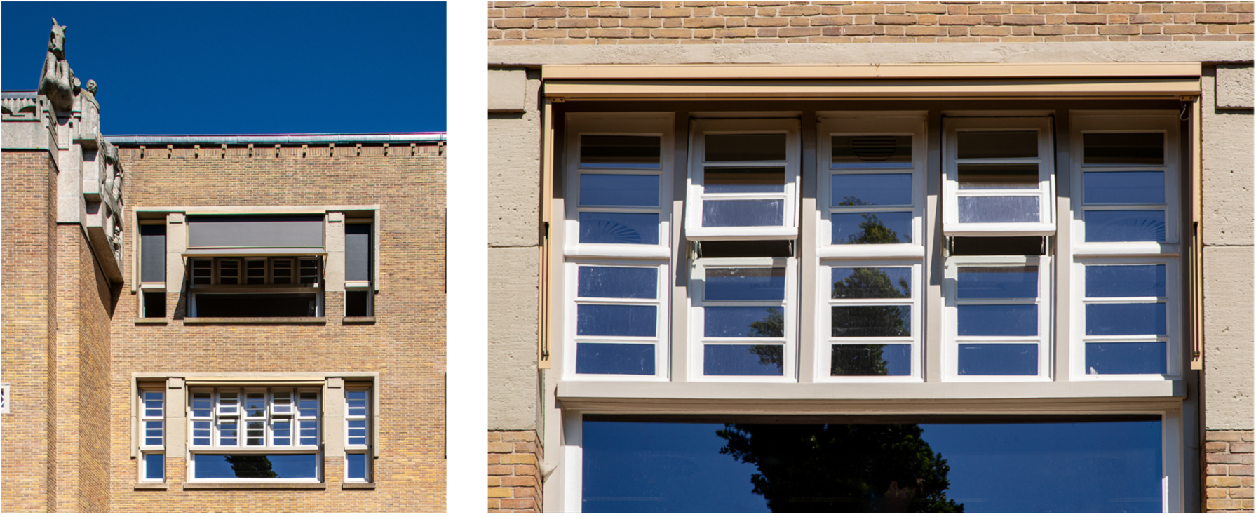 De ramen van het Berlage Lyceum combineren nu historische charme met moderne prestaties dankzij de maatwerk Atmos15 bovenraamsluitingen van GSG.