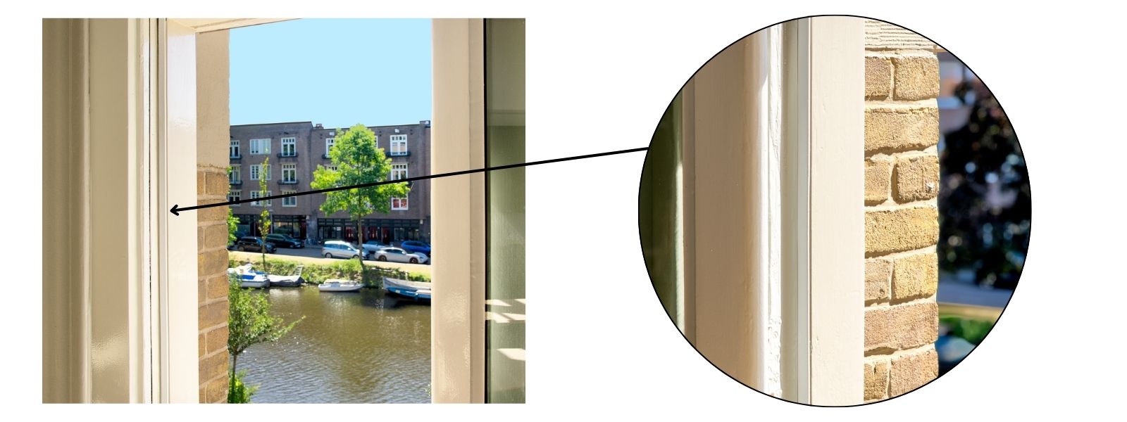 De profielen blijven strak liggen en bieden de beste terugvering op lange termijn, wat zorgt voor moderne tochtwering zonder concessies aan het uiterlijk. Op de afbeelding hieronder is te zien dat de witte strip bijna opgaat in het kozijn. Door de kleur en vorm past het profiel goed bij het houtwerk, zodat de afdichting netjes oogt en het oorspronkelijke aanzicht behouden blijft.